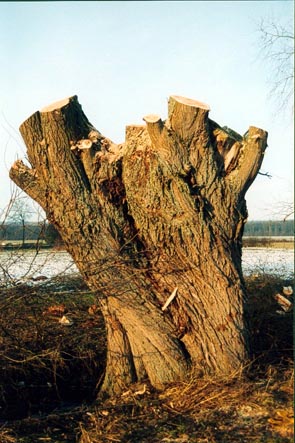 Choisir un saule adulte parmi les espèces suivantes ; saule blanc (salix alba) saule doré ou osier jaune (salix alba"vitellina") saule fragile (salix fragilis) De fin novembre à mi-mars et hors période de gel, prélever un plançon (branche de 6 à 10 cm de diamètre et 2 à 3 mètres de long) sur le saule, puis la couper en biseau à sa base. - croquis 1 - Sur un terrain humide, effectuer un trou de plantation à la tarière ou à la barre à mine de 1 à 1,50 mètre de profondeur et enfoncer la bouture à la masse. - croquis 2 - La première année de végétation, supprimer les bourgeons situés sur la partie inférieure du saule (en dessous de la tête). - croquis 3 - Après la deuxième année de végétation, procéder à un recépage total des rejets. - croquis 4 - Dans les dix premières années, procéder à un recépage total tous les 2 à 3 ans. Après dix ans, espacer les recépages de cinq ans environ les branches coupées pourront servir à la création de nouveaux saules têtard Pour restaurer les vieux saules têtards, procéder à une coupe systématique de l'ensemble des rejets en prenant soin à ne pas arracher les fibres du sommet du tronc (tête). Pour cela, couper dans un premier temps chaque rejet à environ 30 à 40 cm de leur base puis, dans un deuxième temps, recéper la base des rejets au ras de la tête du tronc, |